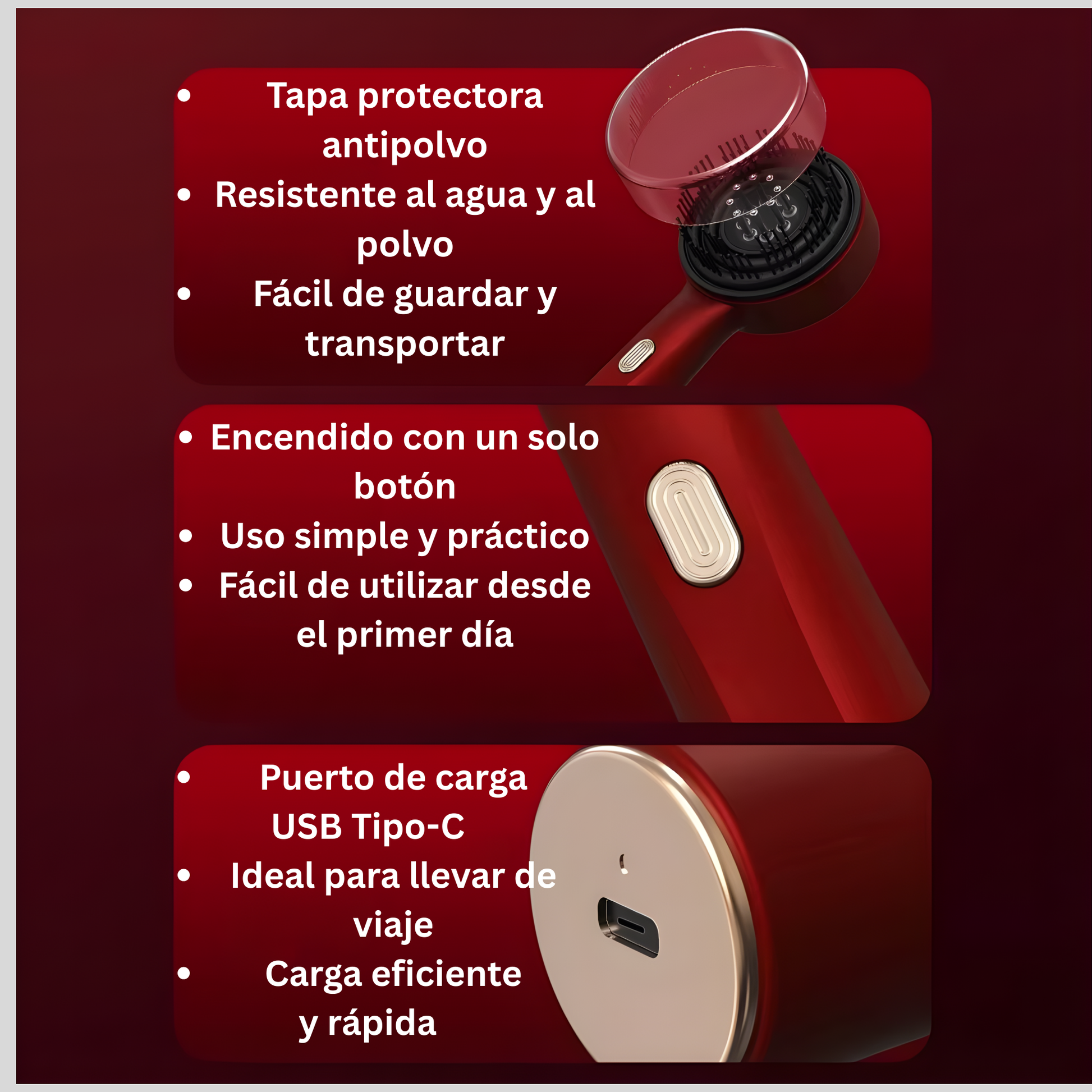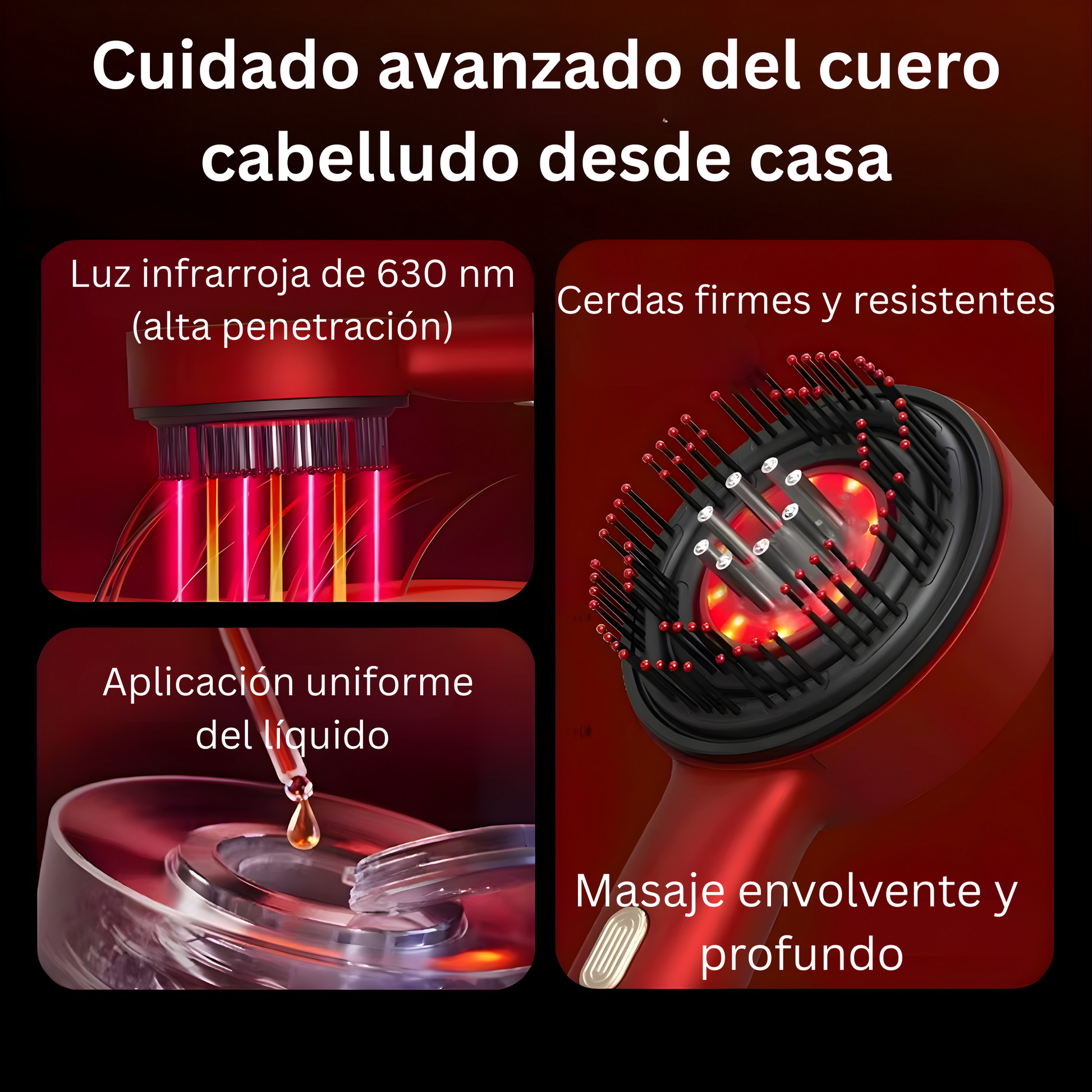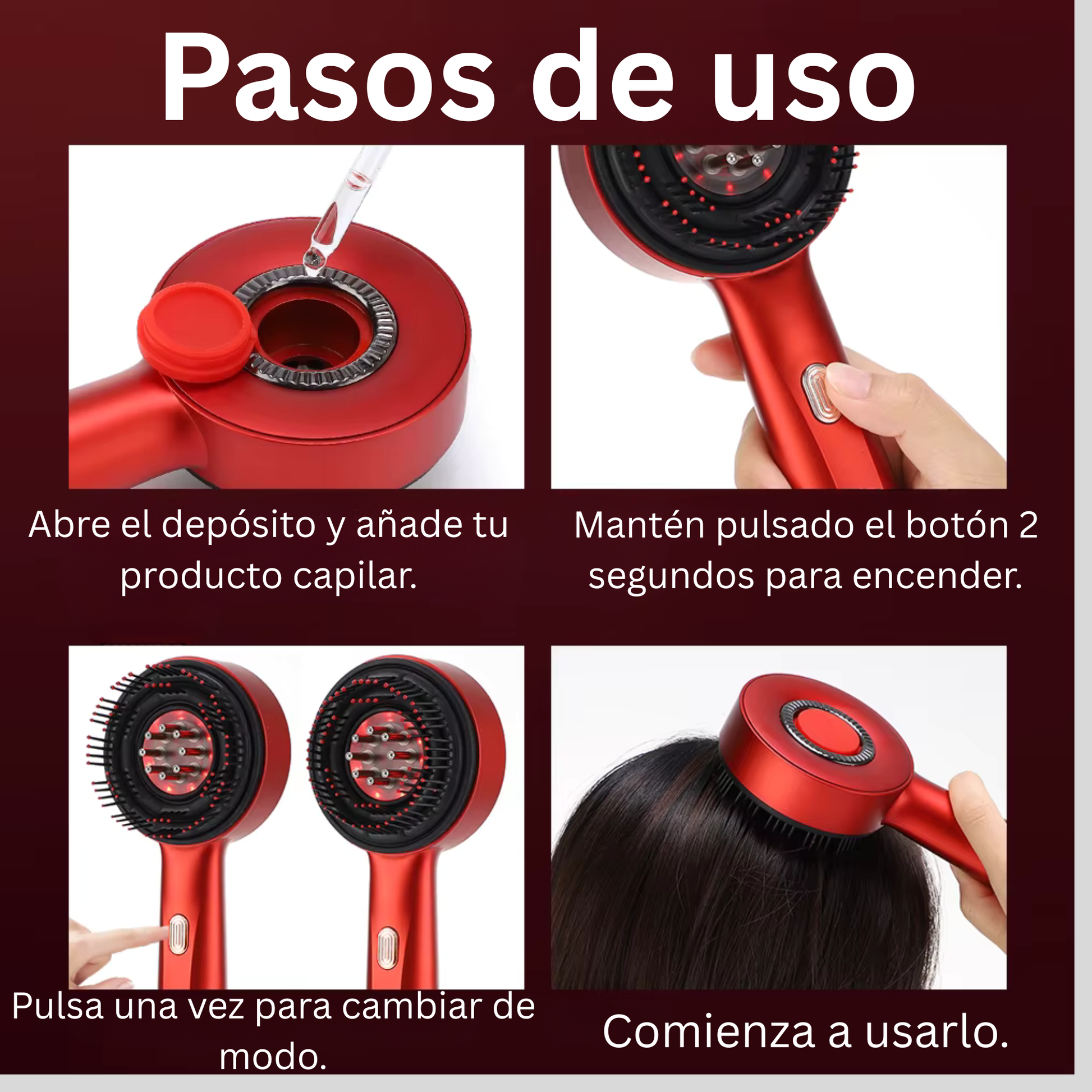 - ✨ Masaje vibratorio inteligente que estimula el cuero cabelludo, mejora la micro-circulación y fortalece el cabello desde la raíz.
