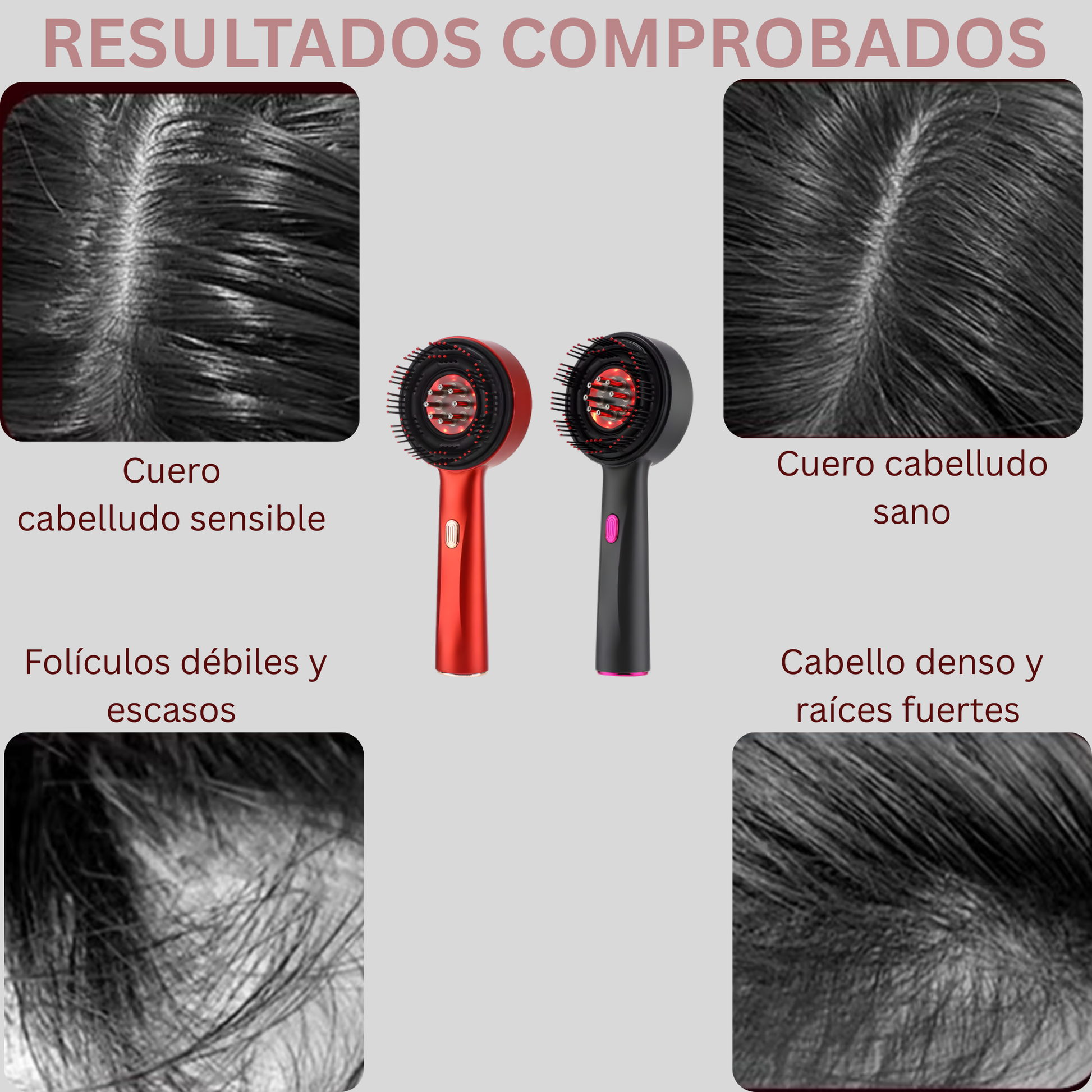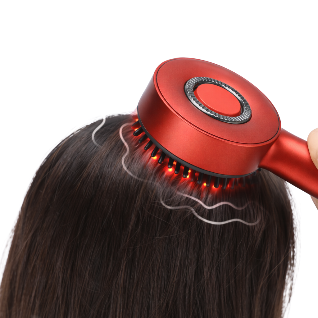 Gracias a su tecnología de vibración eléctrica combinada con luz roja de 630 nm, este cepillo masajeador ayuda a activar los folículos capilares, fortalecer el cabello y mejorar visiblemente su densidad y salud.